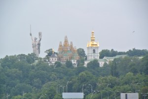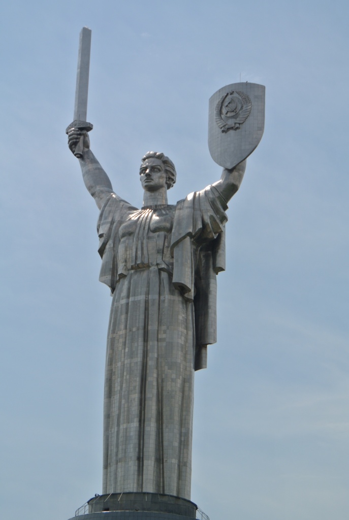 Gleich um die Ecke ist das Areal der „Mutter Heimat“. Zu Ehren der sowjetischen Gefallenen des Zweiten Weltkriegs. Der Platz wurde mit entsprechender Musik beschallt. Auch die Militärtechnik von damals und heute fehlt nicht. Von dort oben hat man einen sehr schönen Blick auf das wieder aufgebaute Kiew. Durch den unerwarteten harten Widerstand der Kiewer gegen die Deutschen, haben die Deutschen nach der Einnahme brutal gewütet.