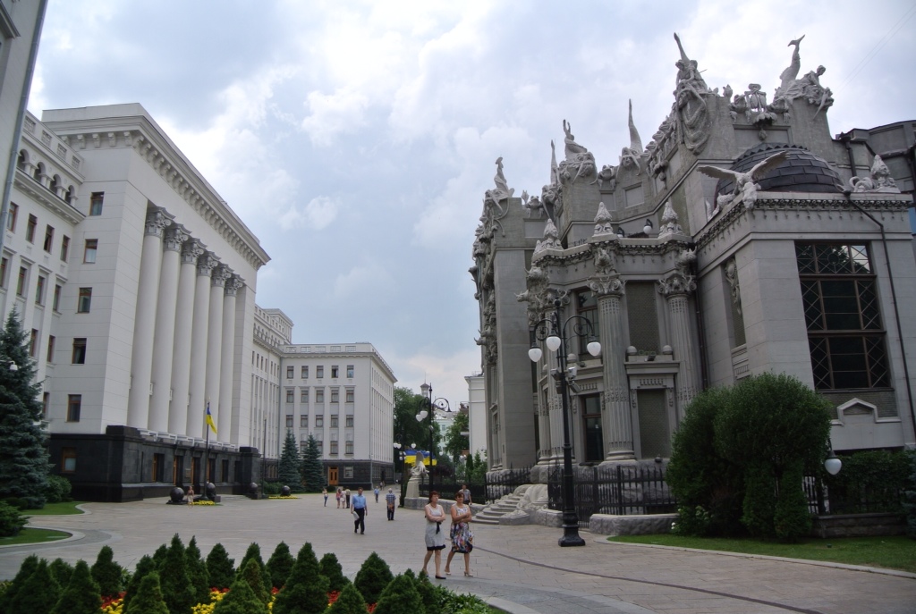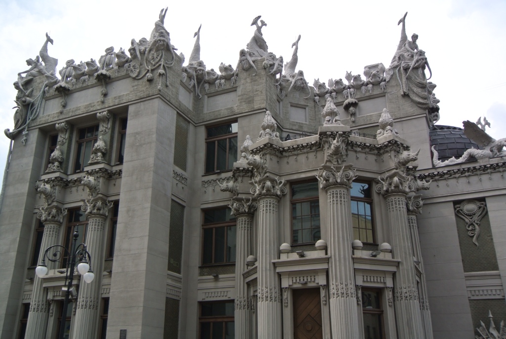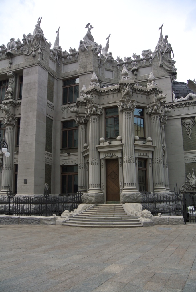 Da die öffentlichen Massenverkehrsmittel (Metro, Trolleybus,Tram, Marschutky) hier sehr gut ausgebaut sind, haben wir uns in den nächsten Bus gesetzt, der uns in Richtung Innenstadt zum sogenannten Chimären-Haus bringt. Gleich gegenüber dem Präsidentenpalast.