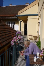 Nach dem Frühstückskaffee sind wir mit der Metro und der Schienenseilbahn zur Michaeliskirche, dann zur Andreaskirche und dann weiter den Andreassteig herunter.