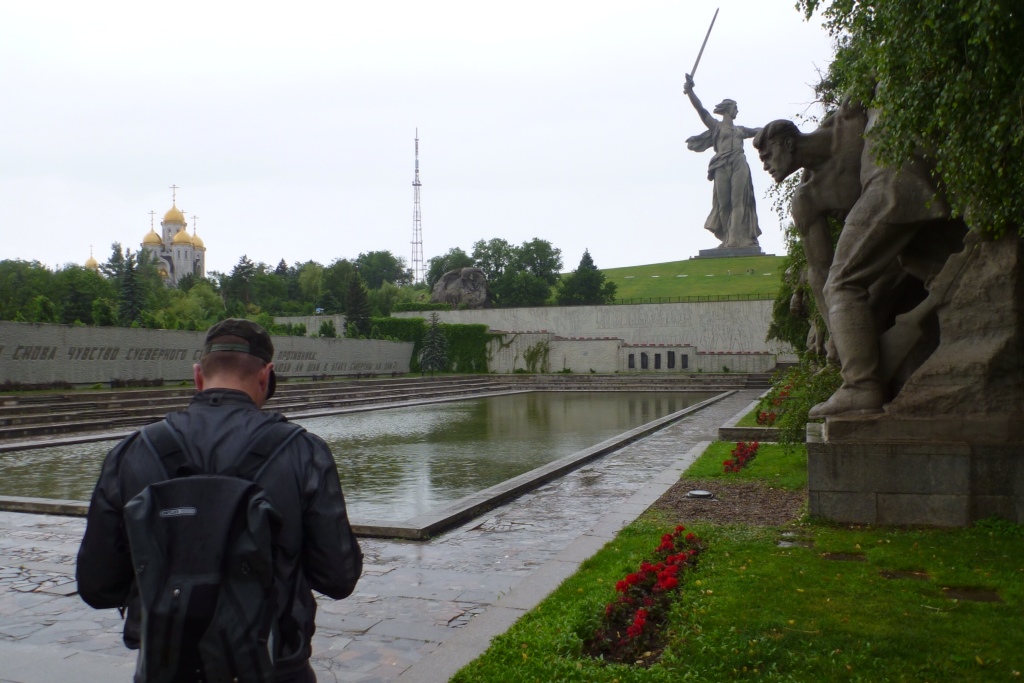 Wie schon vorher in ähnlichen Situationen differieren Maik’s und Uli’s Einschätzung zu dem Mahnmal, aber auf jeden Fall ist es imposant, monumental und beeindruckend. Am späten Vormittag läßt der Regen nach, und wir gehen ins Museum, dass ausführliche Infos zur Schlacht um Stalingrad liefert. Uli findet, dass die Gräuel des Krieges zu wenig klar wird, dafür der Heroismus der Sowjetsoldaten überzeichnet wird.